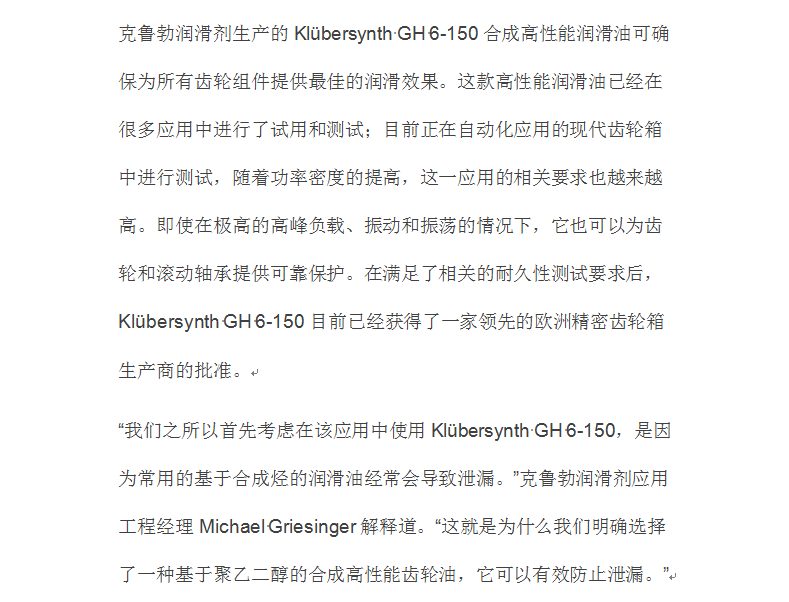 克魯勃用于工業(yè)機(jī)器人精密齒輪的高性能特種潤滑劑 來源:由可貿(mào)易(上海)有限公司 時(shí)間:2018-03-21 點(diǎn)擊數(shù): 上一篇:福斯(中國)2018年調(diào)價(jià)通知函 下一篇:關(guān)于嘉實(shí)多的品牌故事 相關(guān)新聞: FUCHS成功完成了對美國Nye潤滑油公司的收購 克魯勃產(chǎn)品價(jià)格調(diào)整-2018年1月1日起生效 杜邦Krytox 皇家控股公司收購化學(xué)創(chuàng)新有限公司 MOLYKOTE產(chǎn)品漲價(jià)通知 關(guān)于嘉實(shí)多的品牌故事